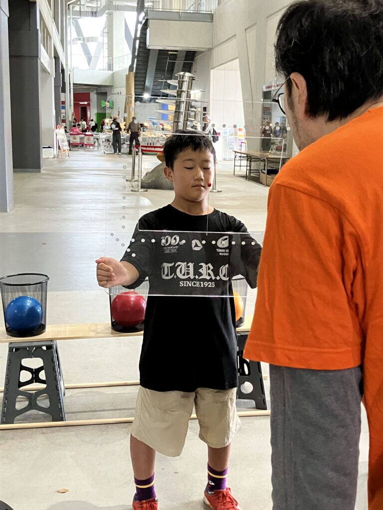 スポーツイベントということで、スポーツビジョン=”体と眼の関係””と目の関係”をテーマに、「眼・心・体」のつながりを体感していただきました。
